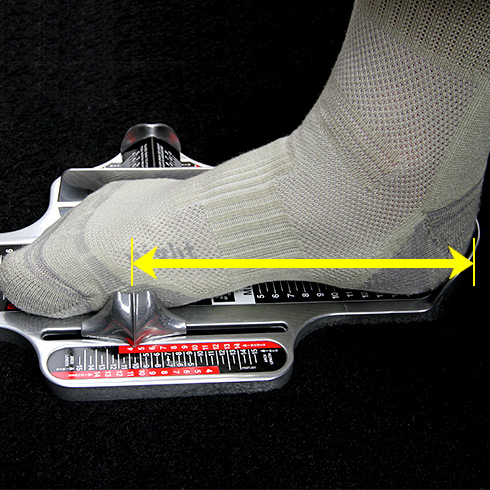 足弓长度与足跟到脚趾长度是不同的,通常选择当中较大值的一个。这是为了确保您的足关节与鞋的折弯处保持在同一位置。