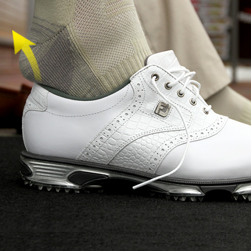 - 穿着合适的袜子。如果您正在试穿高尔夫鞋,那么请带上您平时打球穿着的袜子。 为什么高尔夫鞋配高尔夫功能球袜?